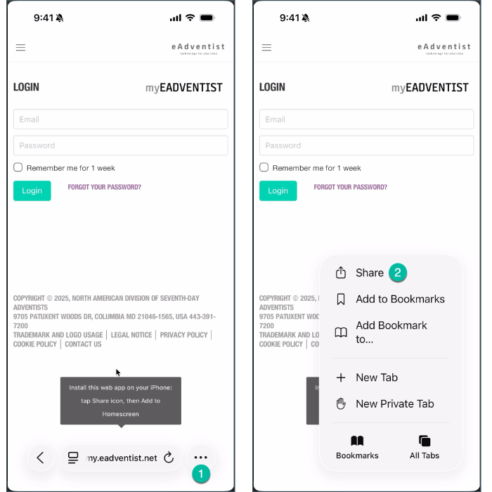 "Install" the myEADVENTIST app