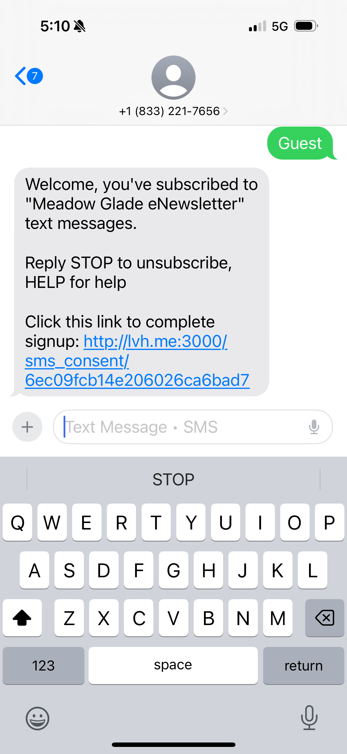 Text "GUEST" to 833-123-4567 to receive SMS notifications for guests.