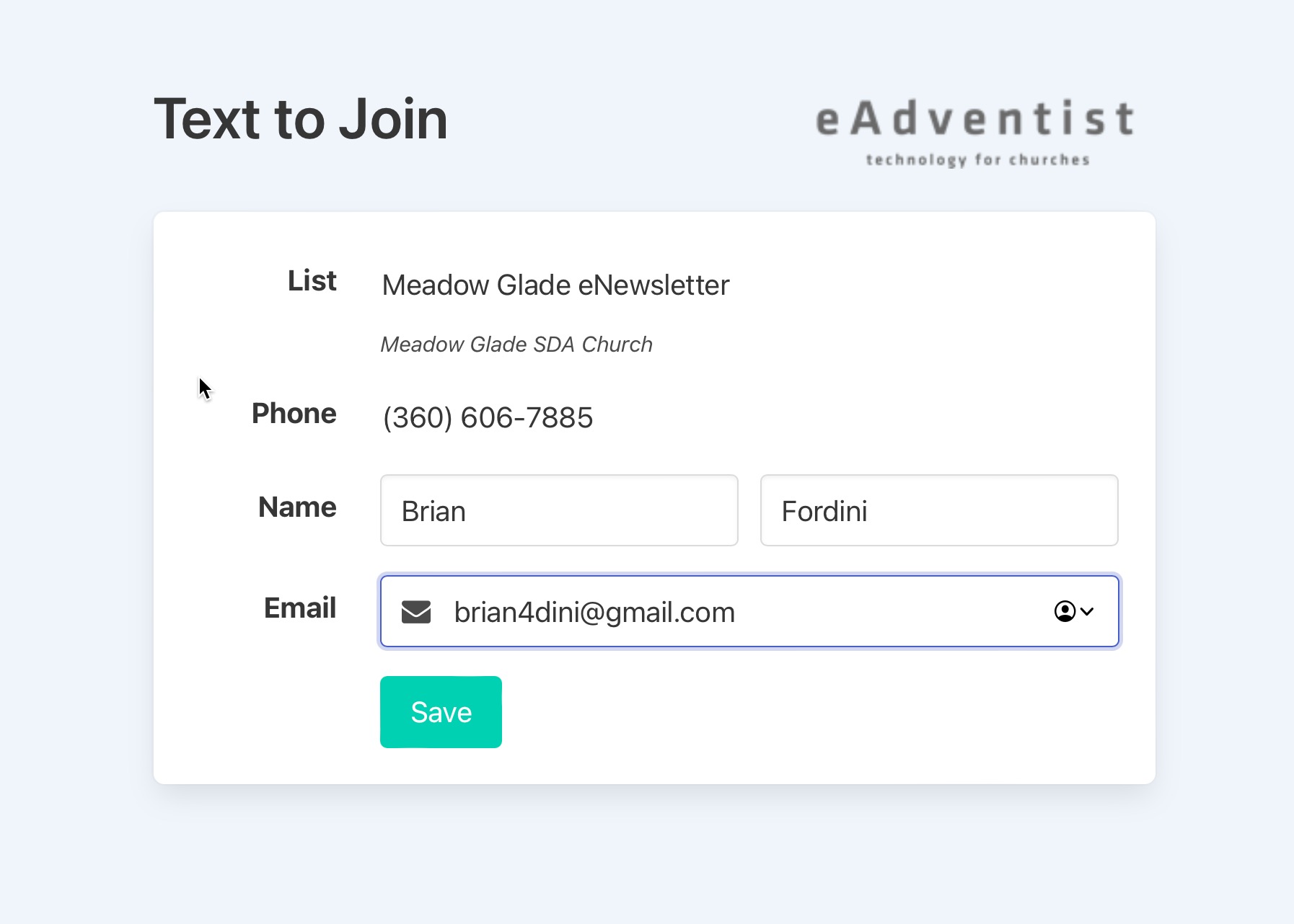 Messaging Lists in eAdventist uses "Text to Join" for both Members and Guests to consent to receiving SMS messages.